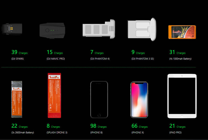 The same Two-Way Charging Hub used for the DJI Mini 3 Series. It can charge a remote controller and three batteries sequentially. It can also be used as a mobile power source to charge remote controllers, smartphones, and other devices and can even store the batteries for convenient carrying securely.